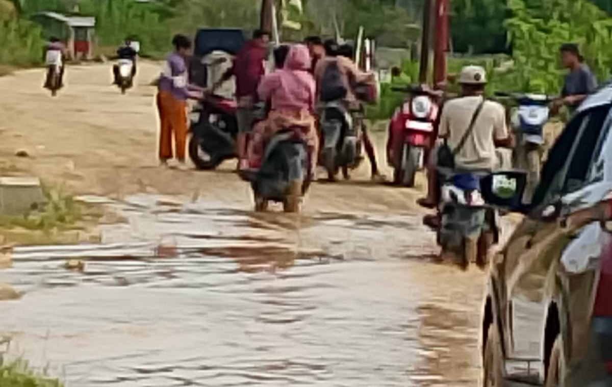 Pantauan Tim PW. investigasi dilapangan bahwa banyak masyarakat menyeberang dan berkumpul di ruas jalan teratai sambil melihat lumpur, Senin (02/03/2026).
